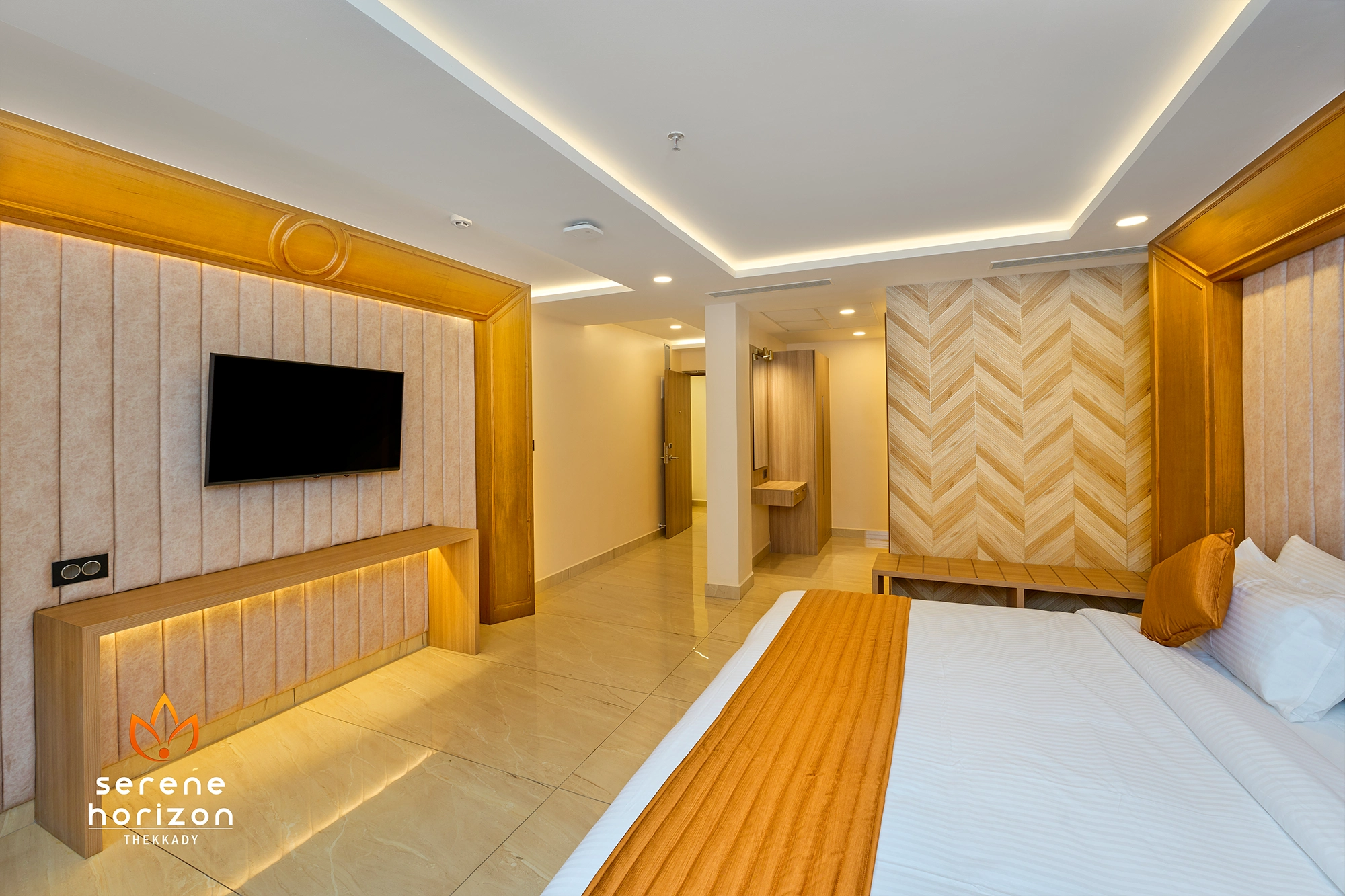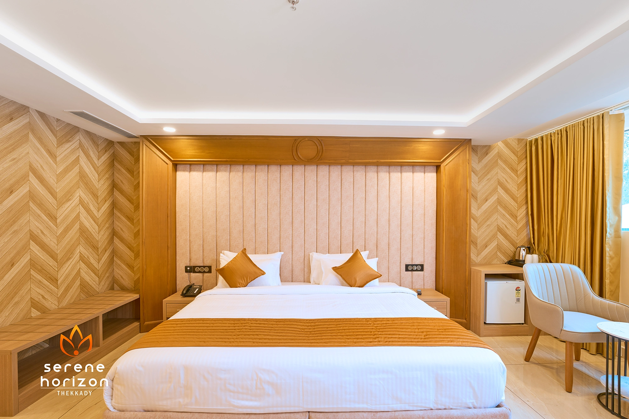 The Imperial Deluxe rooms are situated in the block above the lobby and equipped with all requisite amenities. Spacious and furnished with elegant and functional furniture, the decor is an extension of the theme prevalent elsewhere in the resort, colours that are shades of brown offset by splashes of colour in the furnishing fabrics. Twin beds extend from one end towards a cluster of ample sofas and a length of ceiling to floor windows that look down at the rows of cottages, surrounding vegetation and glimpses of mountains beyond the tree line.